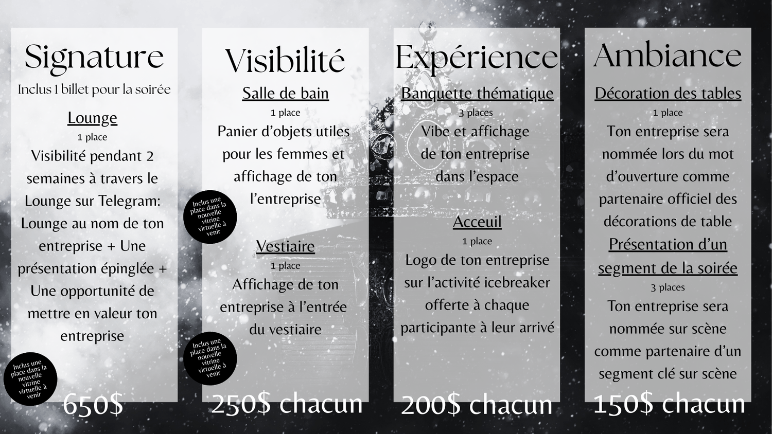 la visibilité de ton entreprise lors de cette soirée Black & White inoubliable.